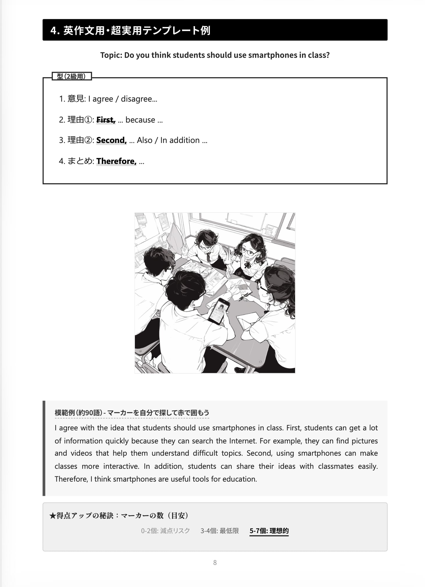 英作文用・超実用テンプレート(語数・配置・個数の目安つき)
